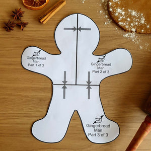 Our Gingerbread Man baking template when made measures 304.8mm tall x 264.7mm wide  / 12" tall x 10.5" wide.