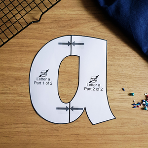 Size guide: Each template varies in height between approx. 22cm to 38cm depending on the shape of the letter. Refer to the size chart below for detailed measurements.